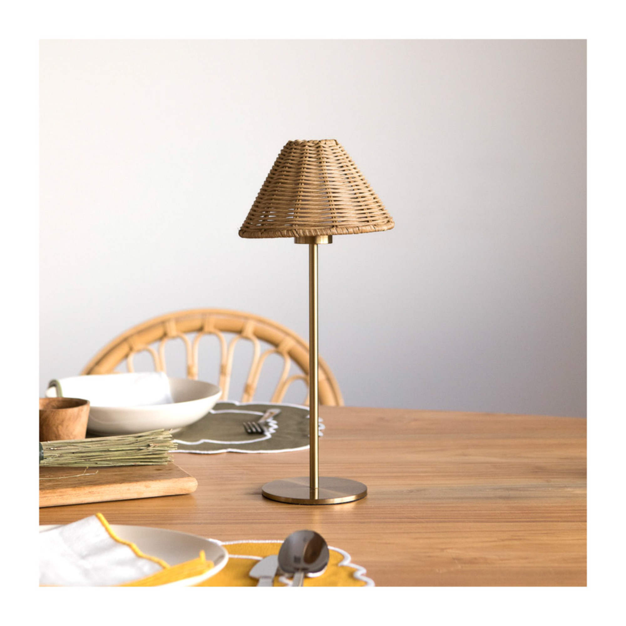 Επιτραπέζιο Φωτιστικό Επαναφορτιζόμενο Με Ρατάν Αμπαζούρ 15x15x43 cm | Διαχρονική Αισθητική & Λειτουργικότητα
