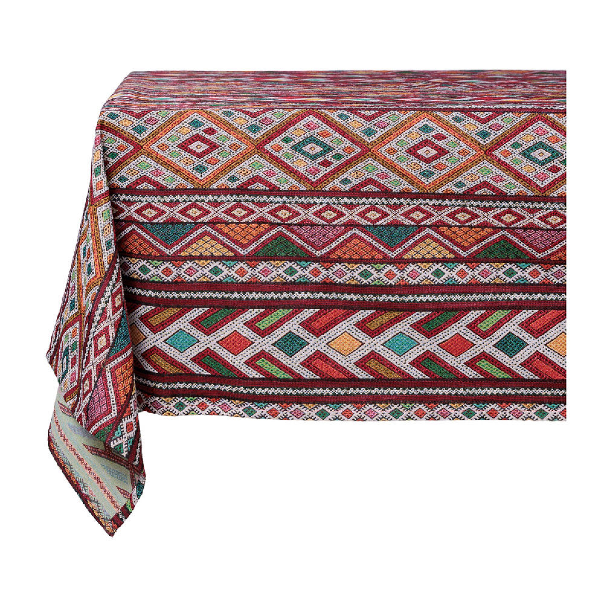 Προσθέστε χρώμα και ζωντάνια στον χώρο σας με αυτό το τετράγωνο βαμβακερό τραπεζομάντηλο 400x400 cm, διακοσμημένο με πολύχρωμα γεωμετρικά σχέδια. Ιδανικό για μεγάλες τραπεζαρίες ή τραπέζια εκδηλώσεων, αυτό το τραπεζομάντηλο αποτελεί ένα εντυπωσιακό statement κομμάτι που μεταμορφώνει κάθε περίσταση σε γιορτή.