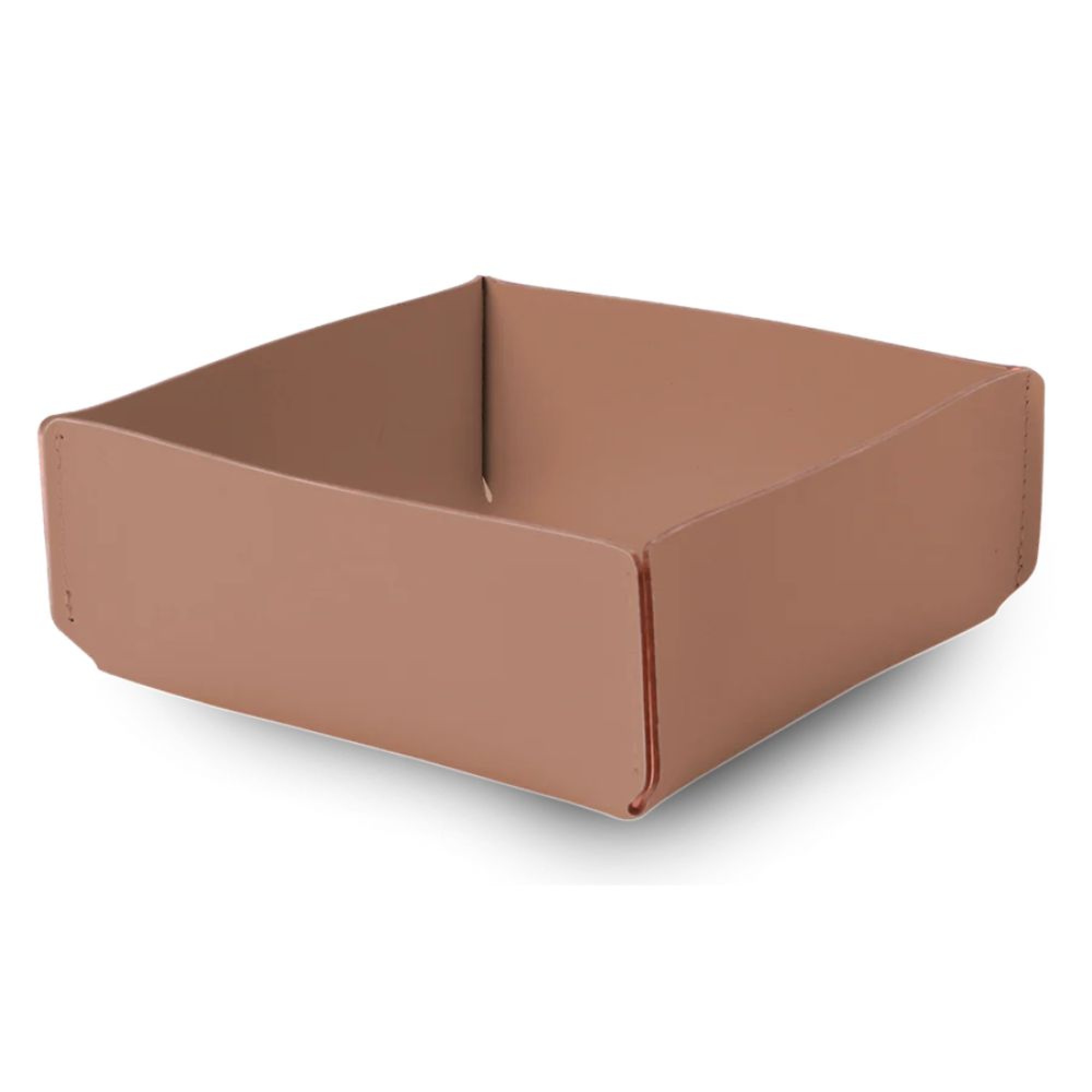 Αναβαθμίστε το art de la table με την τετράγωνη ψωμιέρα από ανακυκλωμένο δέρμα σε καφέ χρώμα. Με διαστάσεις 21x21x9 cm, αποτελεί ιδανική επιλογή για το σερβίρισμα ψωμιού, κριτσινιών και αρτοσκευασμάτων, συνδυάζοντας την πρακτικότητα με την κλασική ζεστασιά του καφέ τόνου.