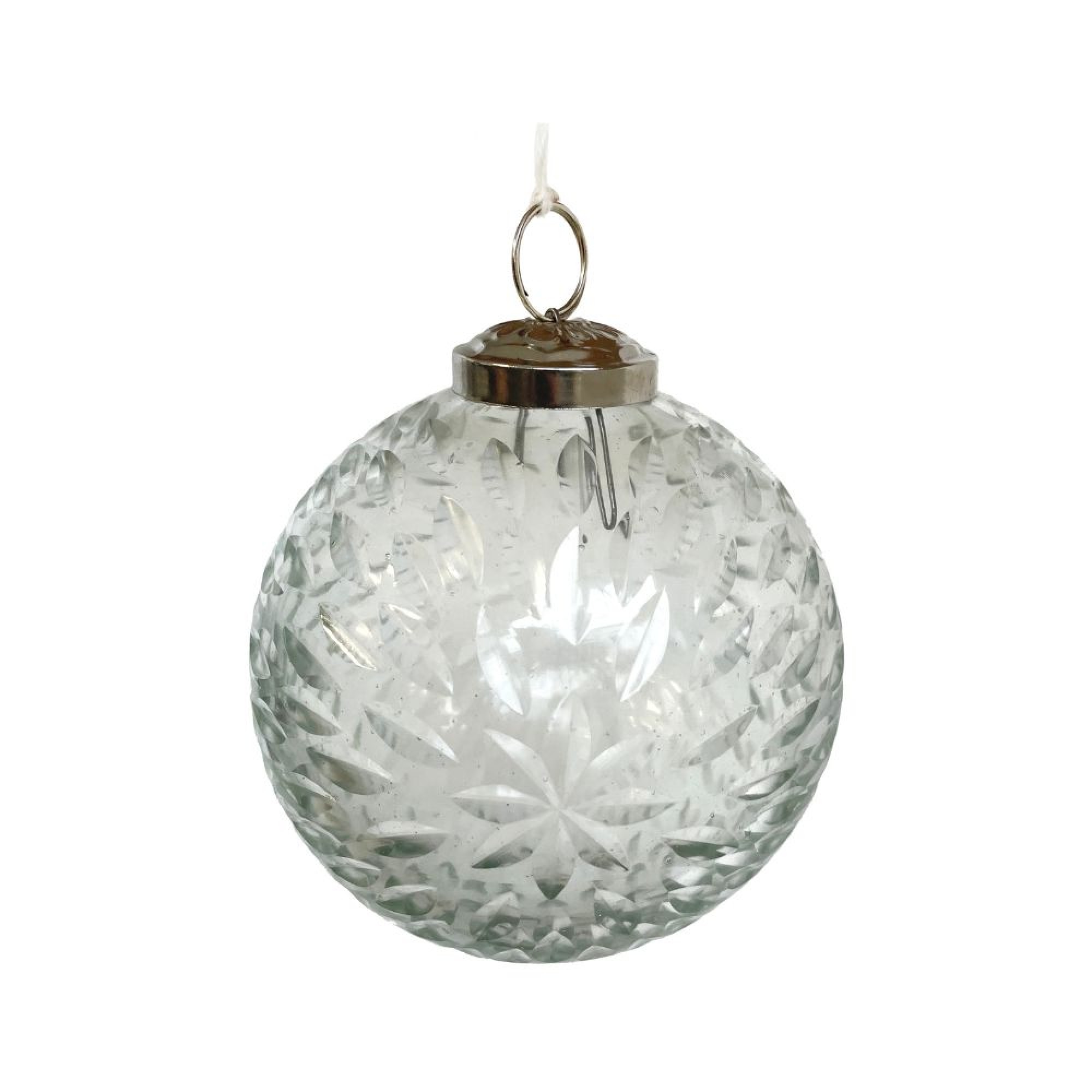 Διάφανη Γυάλινη Χριστουγεννιάτικη Μπάλα 9 cm Με Ανάγλυφο Σχέδιο Και Γάντζο | Κρυστάλλινη Φινέτσα & Εορταστική Κομψότητα
